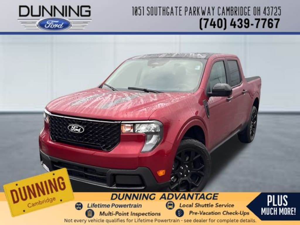 Ruby Red Metallic Tinted Clearcoat 2025 Ford Maverick XLT AWD 8-Speed Automatic EcoBoost 2.0L I4 GTDi DOHC Turbocharged VCT 400W Inverter w/USB Console Rear, 4K Tow Package, Auto High Beams, Black Appearance Package, Black Grille, Black Interior Accents, Black Painted Mirrors, BLIS w/Cross-Traffic Alert, Cross Traffic Brake Assist, Equipment Group 302A, Evasive Steering Assist, Ford Co-Pilot360 1.0, Front & Back Black Edition Ford Logo, Heated Mirror w/Painted Black Skull Caps, Heated Seats, Intersection Assist, Lane-Keeping System, LED Box Lighting, Power Glass Manual-Folding Mirrors, Pre-Collision Assist w/Automatic Emergency Braking, Rear Parking Sensors, Rear-View Camera, Remote Start System, Soft Vinyl Wrapped Heated Steering Wheel, Trailer Brake Controller, Trailer Hitch (Class III) 2" Receiver, Transmission Oil Cooler, Unique Cloth Front Bucket Seats w/Black Appearance, Upgraded Cooling Fan, Wheels: 19" Black Painted Aluminum, XLT Luxury Package.