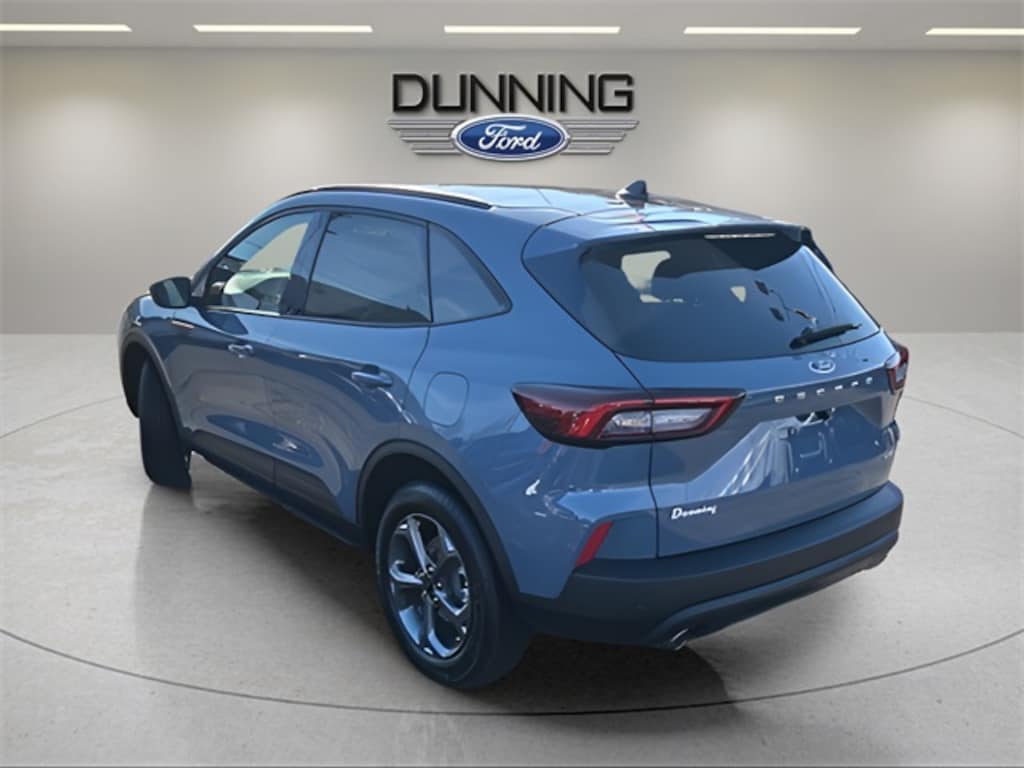Vapor Blue Metallic 2026 Ford Escape ST-Line Select AWD 8-Speed Automatic EcoBoost 2.0L I4 GTDi DOHC Turbocharged VCT 3.47 Axle Ratio, 4-Way Manual Front Passenger Seat, 4-Wheel Disc Brakes, 6 Speakers, 8-Way Power Driver Seat, ABS brakes, Adaptive Cruise Control with Stop-and-Go, Air Conditioning, Alloy wheels, AM/FM radio: SiriusXM 360L, Auto High-beam Headlights, Automatic temperature control, Black Roof-Rack Side Rails, Brake assist, Bumpers: body-color, Compass, Connected Navigation (1-Year Included), Delay-off headlights, Digital Rear View Camera, Driver door bin, Driver vanity mirror, Dual front impact airbags, Dual front side impact airbags, Easy Access Cargo Shade, Electronic Fuel Door Release, Electronic Stability Control, Emergency communication system: SYNC 4 911 Assist, Equipment Group 401A, Evasive Steering Assist, Ford App, Ford Co-Pilot360 Assist+, Four wheel independent suspension, Front anti-roll bar, Front dual zone A/C, Front fog lights, Front reading lights, Fully automatic headlights, Heated door mirrors, Heated steering wheel, Illuminated entry, Intersection Assist, Knee airbag, Low tire pressure warning, Memory seat, Neutral Towing Capability, Occupant sensing airbag, Outside temperature display, Overhead airbag, Overhead console, Panic alarm, Panoramic Vista Roof, Partial Vinyl/Cloth Heated Front Sport Contour Bucket Seats with Red Stitching, Passenger door bin, Passenger vanity mirror, Pedestrian Alert Sounder, Power door mirrors, Power driver seat, Power Liftgate, Power steering, Power windows, Predictive Speed Assist, Radio data system, Radio: AM/FM Stereo with SiriusXM 360L, Rear anti-roll bar, Rear Parking Sensor, Rear reading lights, Rear seat center armrest, Rear window defroster, Rear window wiper, Remote keyless entry, Speed control, Speed-sensing steering, Speed-Sensitive Wipers, Spoiler, Sport steering wheel, Steering wheel mounted audio controls, SYNC 4, SYNC 4 with Enhanced Voice Recognition, Tachometer, Tech Pack #1, Telescoping steering wheel, Tilt steering wheel, Traction control, Trip computer, Variably intermittent wipers, Wheels: 18" Rock Metallic Painted Aluminum.