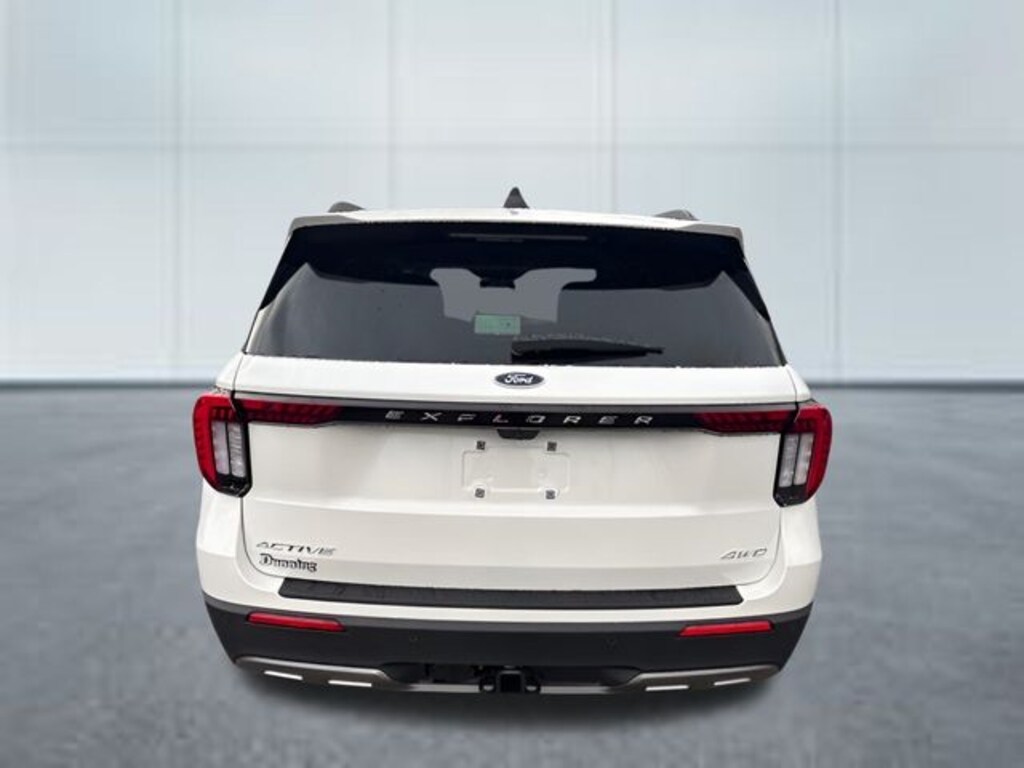 Star White Metallic Tri-Coat 2026 Ford Explorer Active 4WD 10-Speed Automatic 2.3L EcoBoost I-4 Active Comfort Package, Auto High-beam Headlights, Brake assist, Delay-off headlights, Electronic Stability Control, Equipment Group 200A Standard Package, Exterior Parking Camera Rear, Front Fascia, Fully automatic headlights, Heated ActiveX Seating Material Captain's Chairs, Heated Steering Wheel, Navigation System, Panic alarm, Power Liftgate, Remote Start System, Security system, Speed control, Unique Cloth Heated Captain's Chairs.