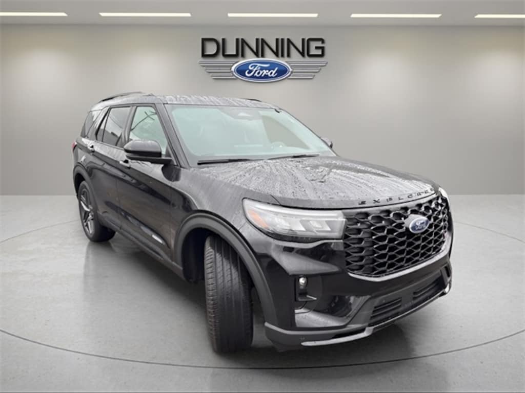Agate Black Metallic 2026 Ford Explorer ST 4WD 10-Speed Automatic 3.0L EcoBoost V6 10 Speakers, 3rd row seats: bench, Air Conditioning, Alloy wheels, AM/FM radio: SiriusXM with 360L, Apple CarPlay/Android Auto, Auto High-beam Headlights, Auto-dimming door mirrors, Auto-dimming Rear-View mirror, Automatic temperature control, BlueCruise Equipped (1-Year + 90-Day Plan), Brake assist, Bumpers: body-color, Compass, Delay-off headlights, Driver door bin, Driver vanity mirror, Electronic Stability Control, Equipment Group 400A Standard Package, Exterior Parking Camera Rear, Ford Connectivity Pack (1-Time Purchase - 7 Years), Four wheel independent suspension, Front & 2nd Rows Floor Liners w/Carpet Floor Mats, Front Bucket Seats, Front Center Armrest, Front dual zone A/C, Front fog lights, Front reading lights, Fully automatic headlights, Garage door transmitter, Heated door mirrors, Heated front seats, Heated rear seats, Heated steering wheel, Heated/Ventilated Miko Captain's Chairs, Illuminated entry, Leather steering wheel, Memory seat, Navigation System, Outside temperature display, Overhead console, Panic alarm, Passenger door bin, Passenger vanity mirror, Power door mirrors, Power driver seat, Power Liftgate, Power passenger seat, Power steering, Power windows, Radio: B&O Sound System by Bang & Olufsen, Rain sensing wipers, Rear air conditioning, Rear reading lights, Rear window defroster, Rear window wiper, Remote keyless entry, Security system, SiriusXM w/360L (3-Year Plan), Speed control, Speed-sensing steering, Speed-Sensitive Wipers, Split folding rear seat, Spoiler, Sport steering wheel, Steering wheel mounted audio controls, Tachometer, Telescoping steering wheel, Tilt steering wheel, Traction control, Trip computer, Turn signal indicator mirrors, Variably intermittent wipers, Ventilated front seats, Wheels: 21" Magnetite-Painted Aluminum. Price includes: $500 - Retail Bonus Cash. Exp. 01/05/2026