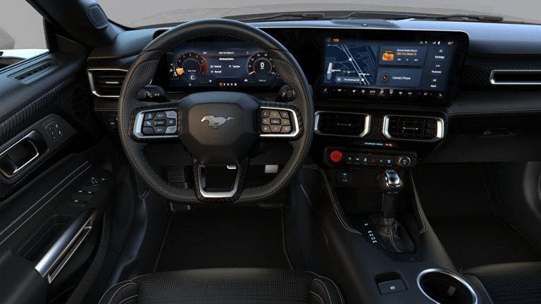 Step inside the cabin, and you'll be greeted by a wealth of premium features that cater to your every need. The Leather-Trimmed Bucket Seats with Color Accents provide exceptional comfort and support, while the Magnesium Framed Panoramic Curved Display and SYNC 4 infotainment system keep you connected and entertained.