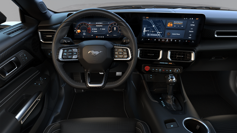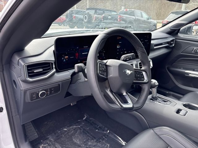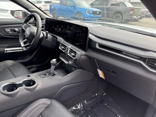 The interior of the Mustang EcoBoost Premium is designed to elevate your driving experience. Luxurious leather-trimmed bucket seats with color accents provide exceptional comfort and support, while the Magnesium Framed Panoramic Curved Display and SYNC 4 infotainment system offer seamless connectivity and intuitive control. The Active Anti-Theft System and Perimeter Alarm provide added peace of mind, ensuring the protection of your prized possession.