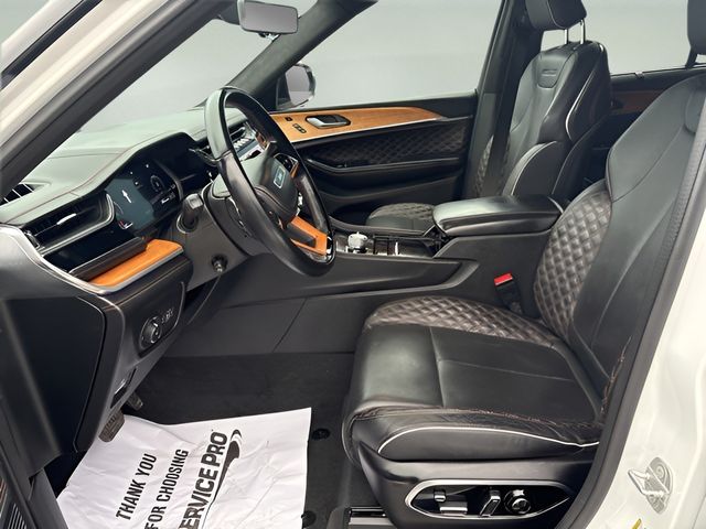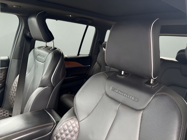 19 Speakers High Performance Audio, 2nd-Row Manual Window Shades, 4-Wheel Disc Brakes, 950 Watt Amplifier, ABS brakes, Active Noise Control System, ADV Protech Group IV, Anti-whiplash front head restraints, Auto High-beam Headlights, Auto-dimming door mirrors, Brake assist, Bumpers: body-color, Delay-off headlights, Deluxe Headliner, Dual front impact airbags, Dual front side impact airbags, Electronic Stability Control, Emergency communication system, Front anti-roll bar, Front fog lights, Front Passenger Interactive Display, Fully automatic headlights, Heads-Up Display, Heated door mirrors, Knee airbag, Low tire pressure warning, Luxury Tech Group V, Navigation System, Night Vision w/Pedestrian-Animal Detection, Occupant sensing airbag, Overhead airbag, Palermo Leather Door Trim, Palermo Leather Seats, Panic alarm, Power door mirrors, Power Liftgate, Power moonroof, Quick Order Package 25U Summit Reserve, Rear anti-roll bar, Rearview Autodim Digital Display Mirror, Roof rack: rails only, Security system, Speed control, Spoiler, Summit Reserve, Summit Reserve Badge, Turn signal indicator mirrors, Ventilated Rear Seats, Wheels: 21" x 9" Machined Face/Painted Aluminum, Wireless Charging Pad.