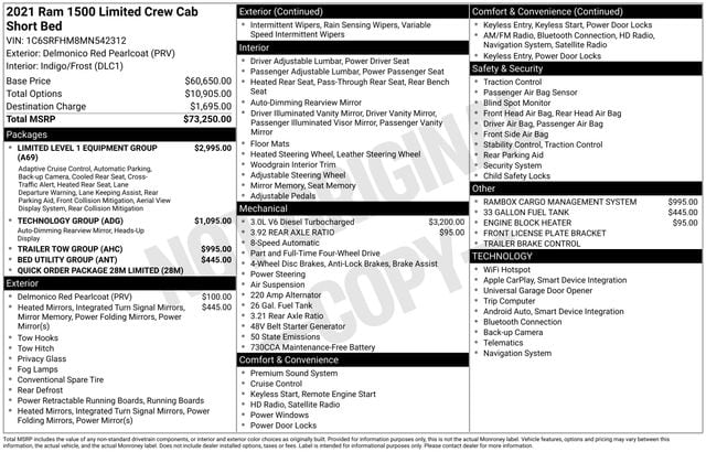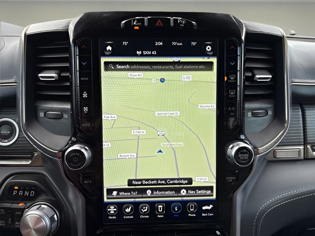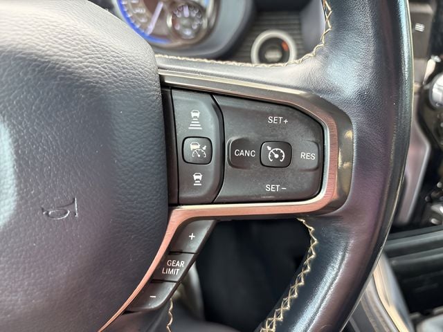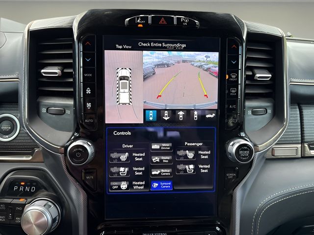1-Yr SiriusXM Guardian Trial, 10 Speakers, 12" Touchscreen Display, 4G LTE Wi-Fi Hot Spot, Adaptive Cruise Control w/Stop & Go, Adjustable pedals, Air Conditioning, AM/FM radio: SiriusXM with 360L, Apple CarPlay, Apple CarPlay/Android Auto, Audio memory, Auto-dimming Rear-View mirror, Auto-leveling suspension, Automatic temperature control, Bed Utility Group, Compass, Disassociated Touchscreen Display, Driver door bin, Driver vanity mirror, Exterior 115V AC Outlet, Exterior Mirrors w/Memory, For More Info, Call 800-643-2112, Front dual zone A/C, Front reading lights, Garage door transmitter, Genuine wood console insert, Genuine wood dashboard insert, Genuine wood door panel insert, Google Android Auto, GPS Antenna Input, GPS Navigation, HD Radio, Heads-Up Display, Heated steering wheel, Illuminated entry, Integrated Center Stack Radio, Integrated Voice Command w/Bluetooth, Lane Keep Assist, Leather steering wheel, LED CHMSL Lamp, Limited Level 1 Equipment Group, Memory seat, MOPAR 4 Adjustable Cargo Tie-Down Hooks, MOPAR Deployable Bed Step, Outside temperature display, Overhead console, Parallel & Perp Park Assist w/Stop, Passenger vanity mirror, Pedal memory, Pedestrian Emergency Braking, Pick-Up Box Lighting, Power door mirrors, Power driver seat, Power steering, Power windows, Power-Folding Mirrors, Quick Order Package 28M Limited, Radio data system, Radio: Uconnect 12 w/Navigation, Rear seat center armrest, Rear step bumper, Rear window defroster, Rearview Autodim Digital Display Mirror, Remote keyless entry, SiriusXM Radio Service, SiriusXM Satellite Radio, SiriusXM Traffic Plus, SiriusXM Travel Link, SiriusXM w/360L, Steering wheel mounted audio controls, Surround View Camera System, Tachometer, Technology Group, Telescoping steering wheel, Tilt steering wheel, Traction control, Trailer Brake Control, Trailer Light Check, Trailer Reverse Steering Control, Trailer Tire Pressure Monitoring System, Trailer Tow Group (DISC), Trailer Tow Mirrors, Trip computer, Turn signal indicator mirrors, USB Host Flip, Ventilated Rear Seats, Voltmeter.